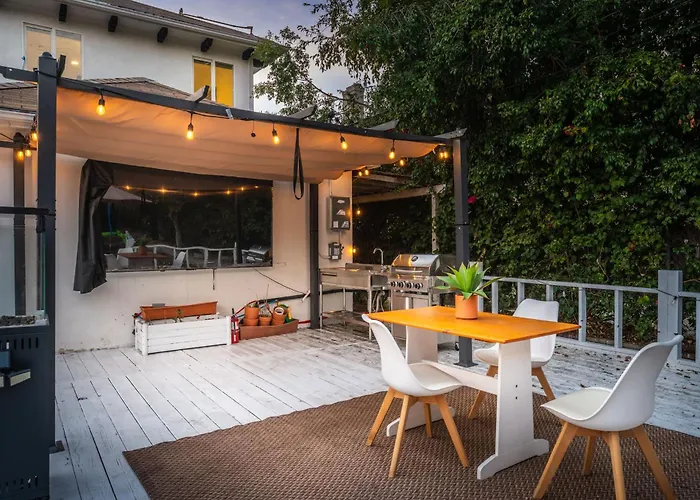 La casa de vacaciones goza de una ubicación a unos 15 minutos en coche del Estadio de los Dodgers y a 4 km del Museo de Arte del Condado de Los Ángeles. Esta villa también da acceso a recintos deportivos como el Coliseo Conmemorativo, situado a 4,1 km. Entre los lugares de interés educativo a unos 20 minutos en coche de la Villa Luxe 6Br Retreat With Trampoline Swing And Bbq Grill se encuentra el Auditorio Dolby.
